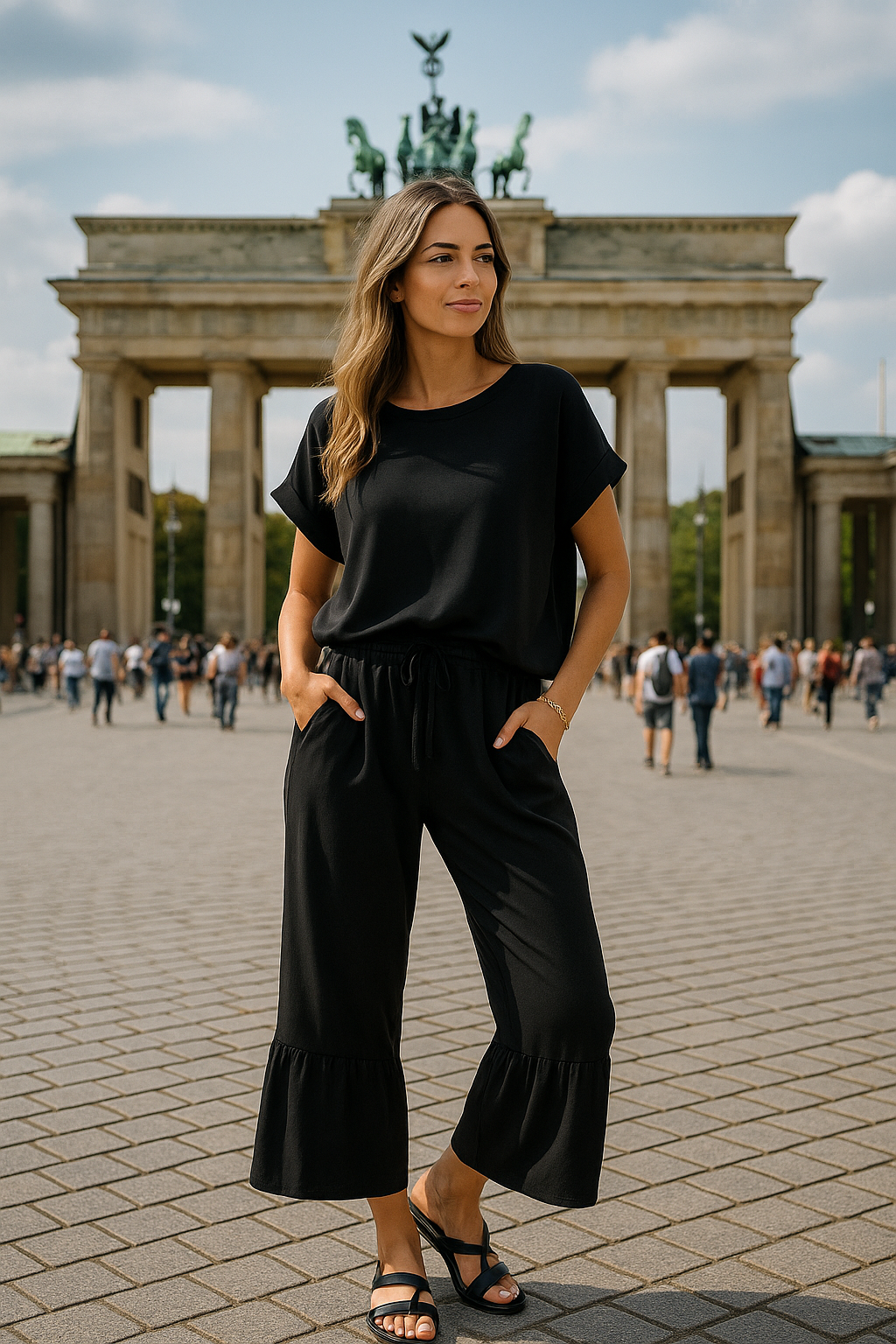Verschaffen Sie sich mühelose Eleganz mit diesem weichen, atmungsaktiven, zweiteiligen Set.
