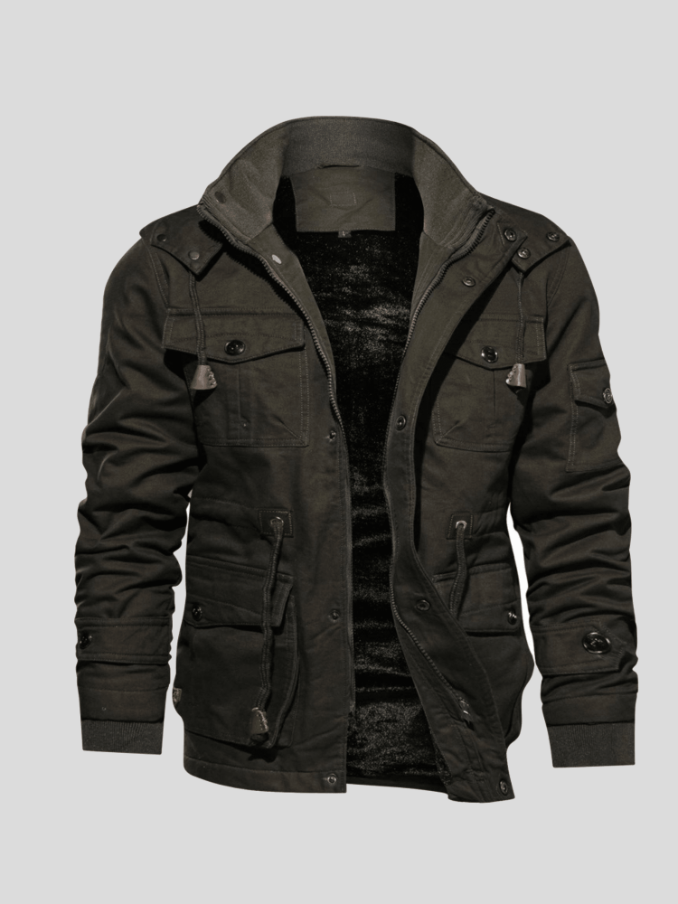 Er besteht aus hochwertigen, dicken thermischen Stoffen und ist mit Fleece gefüttert, um Ihnen an kalten Wintertagen intensive Wärme zu bieten. Er verfügt über einen funktionalen Reißverschluss und Taschen für Ihre Bequemlichkeit. Eine großartige Schicht, besonders für raue Wetterbedingungen.