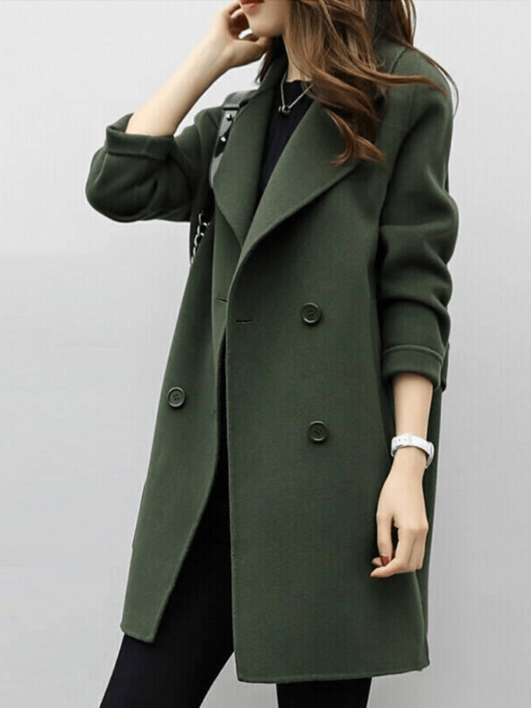 • Markante Revers: Ein moderner Akzent, der den klassischen Charme des Mantels hervorhebt.